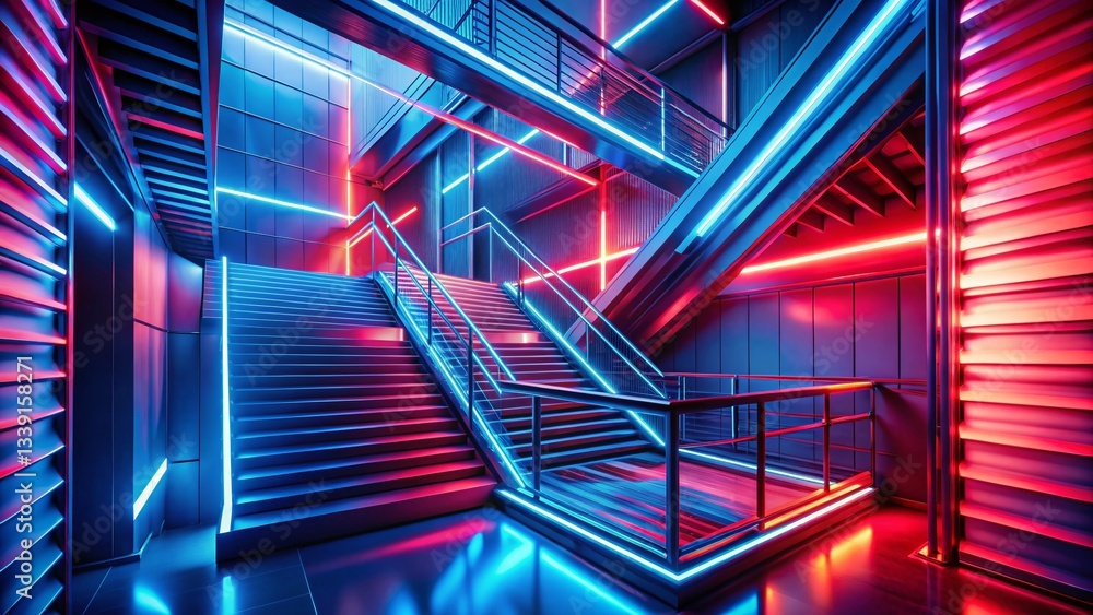 Abstract Neon Staircase Red & Blue Aerial Photography Wallpaper Mural - Decorly Solutions | Decorly Solutions