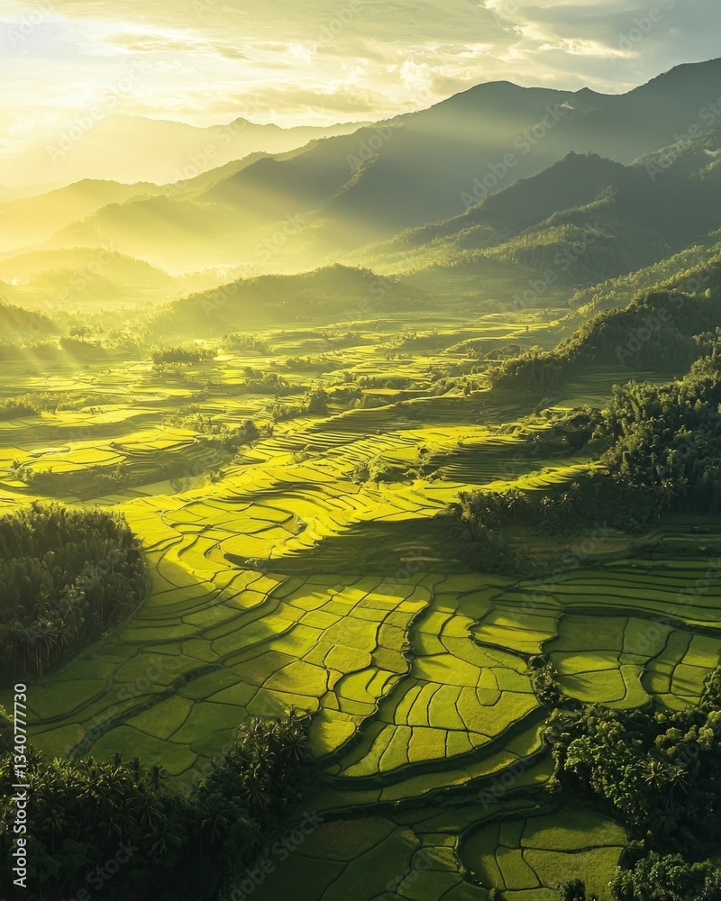 Aerial View Of Rice Fields In The Morning Wallpaper Mural - Decorly Solutions | Decorly Solutions