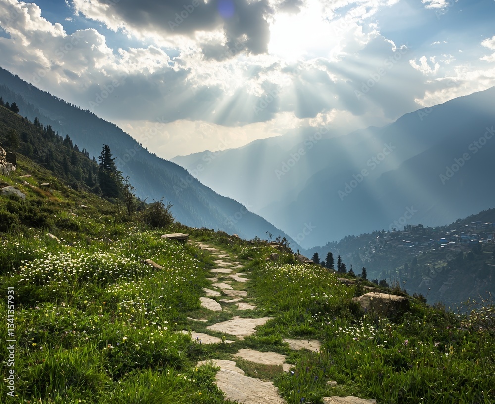 Nepal's mountain valley is home to a breathtaking stone trai Wallpaper