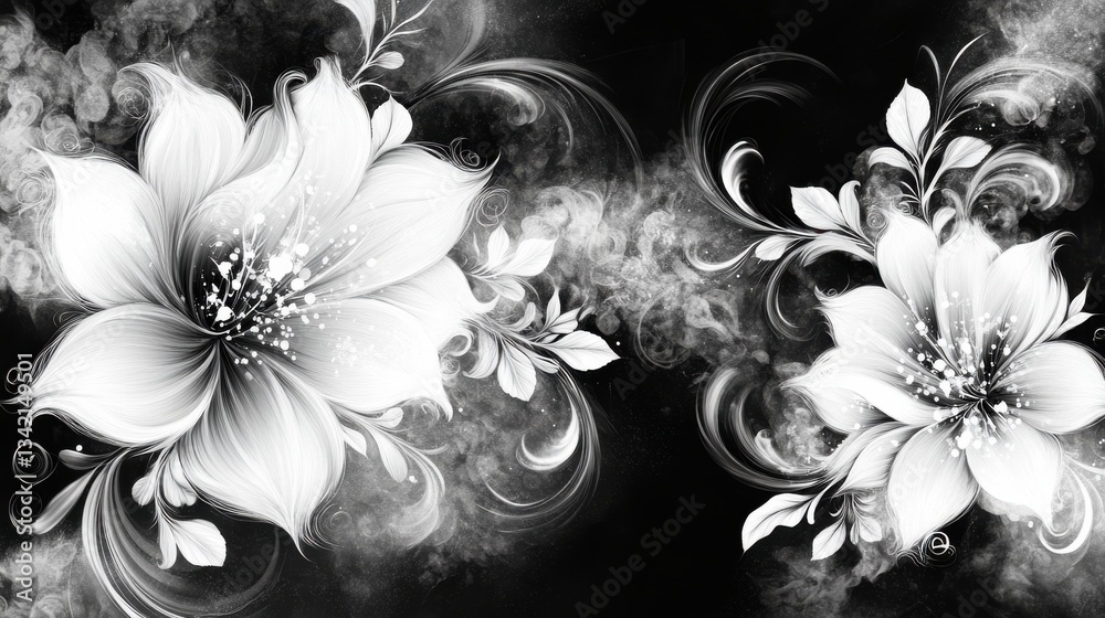 Elegant Black And White Floral Design With Swirls Wallpaper Mural - Decorly Solutions | Decorly Solutions