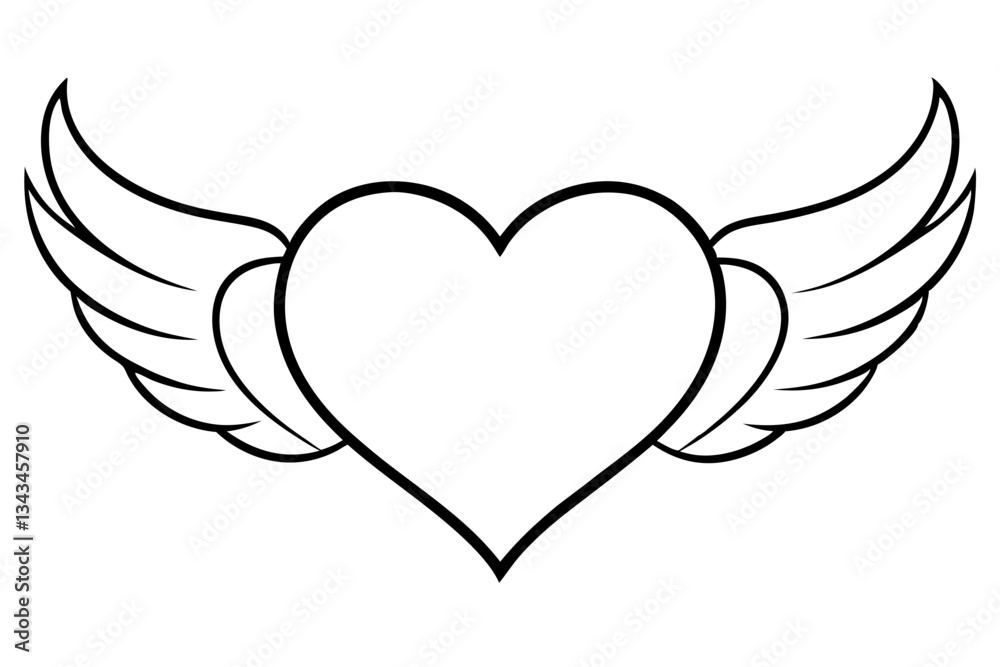 Heart Wing Shape Ornament Line Art Silhouette Vector Wallpaper Mural - Decorly Solutions | Decorly Solutions