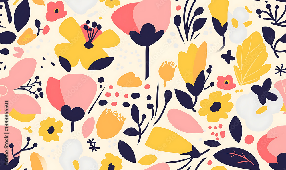 Creative 2D Doodle Floral Illustrations Text Space for Versatile Designs, Greeting Cards, Invitations