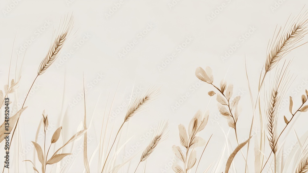 Minimalist Boho-style Wheat Illustration Wallpaper In Soft Neutral Wallpaper Mural - Decorly Solutions | Decorly Solutions