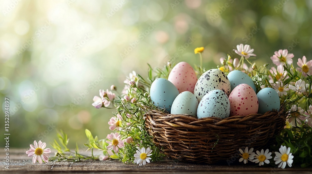 Easter Eggs In A Wicker Basket With Daisies Wallpaper Mural - Decorly Solutions | Decorly Solutions