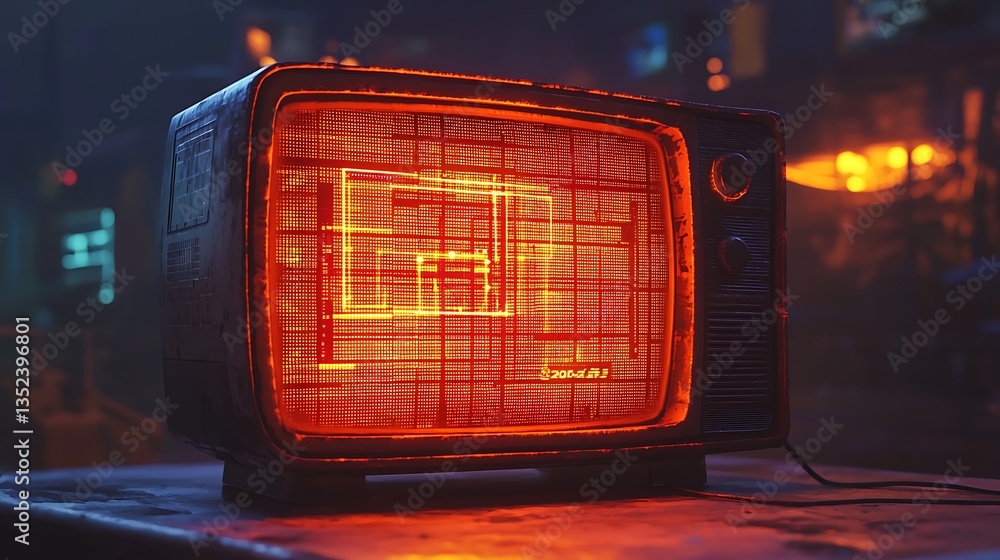 Retro Tv Displaying Futuristic Orange Digital Grid Pattern Wallpaper Mural - Decorly Solutions | Decorly Solutions