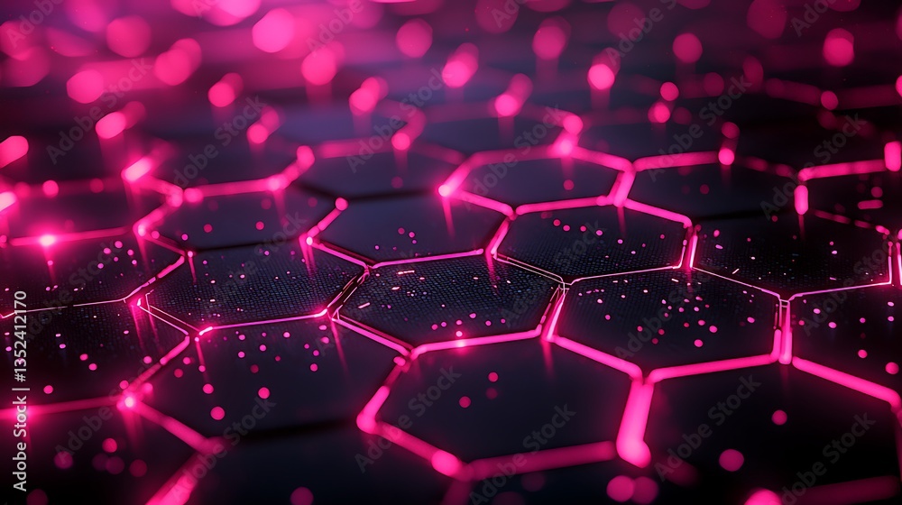 Abstract Neon Hexagon Pattern with Pink and Blue Glowing Lights for Technology or Digital Design