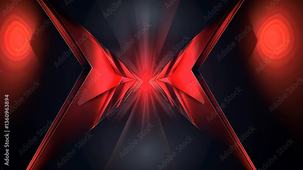 Abstract red and black geometric tunnel.