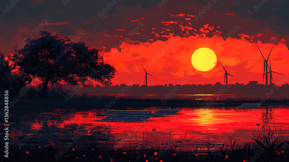 Renewable Energy At Sunset With Solar Panels And Wallpaper Mural - Decorly Solutions | Decorly Solutions