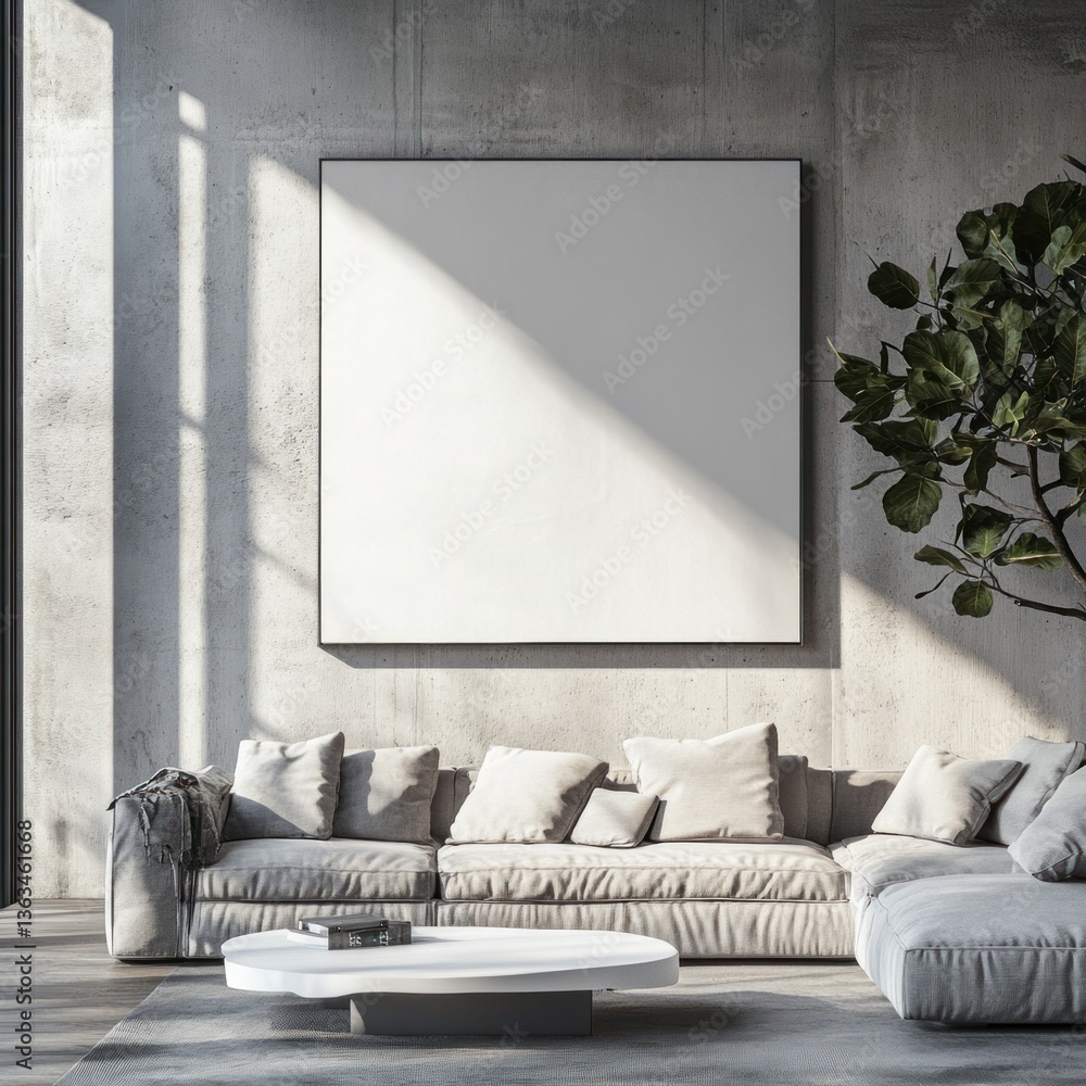Modern Living Room With Large Blank Canvas Sectional Wallpaper Mural - Decorly Solutions | Decorly Solutions