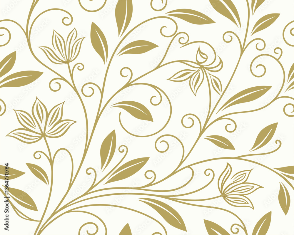 Luxury Golden Flowers And Leaves Repeat Sophisticated Botanical Wallpaper Mural - Decorly Solutions | Decorly Solutions
