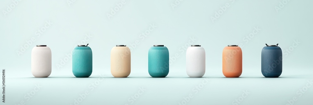 Seven Cylindrical Containers In Varying Pastel Colors Are Wallpaper Mural - Decorly Solutions | Decorly Solutions