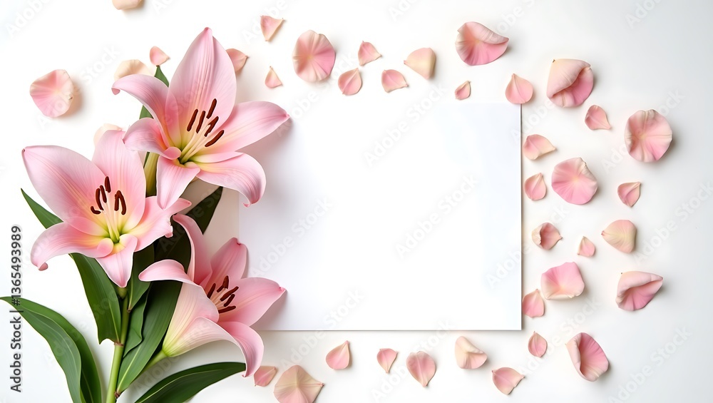 Pink Lilies Blank White Card Soft White Background Wallpaper Mural - Decorly Solutions | Decorly Solutions