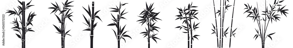 Icon set featuring different styles of bamboo silhouettes suitable for various design projects