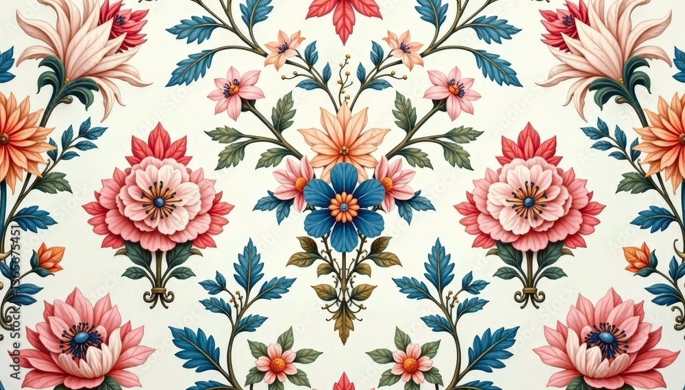 Intricate Floral Damask Pattern In Pastel Hues Soft Wallpaper Mural - Decorly Solutions | Decorly Solutions