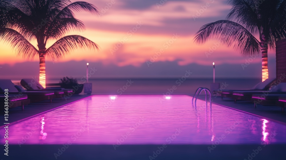 Poolside Paradise At Dusk The Infinity Pool Mirrors Wallpaper Mural - Decorly Solutions | Decorly Solutions