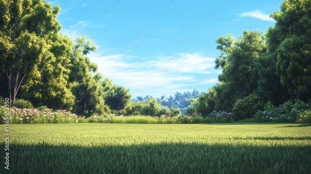 Serene Summer Meadow Landscape Lush Green Grass Sunlight Wallpaper Mural - Decorly Solutions | Decorly Solutions