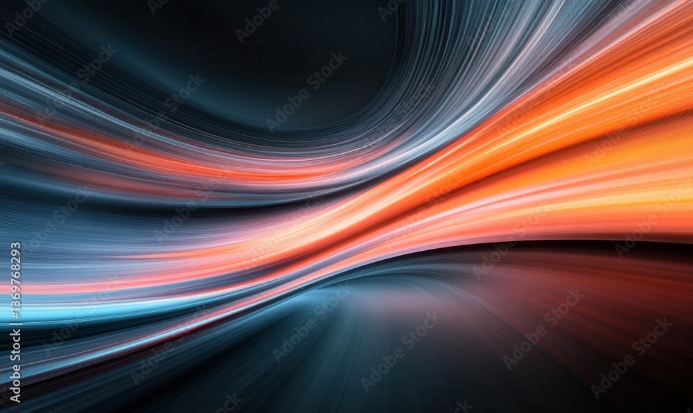 Dynamic abstract image featuring vibrant, flowing lines shades of blue, orange, and red, creating sense of motion and energy. smooth curves and vivid colors evoke feeling of fluidity
