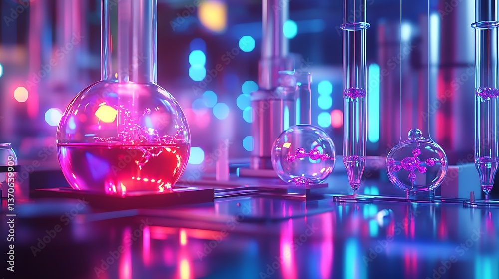 A futuristic lab scene with high-tech equipment and colorful Wallpaper