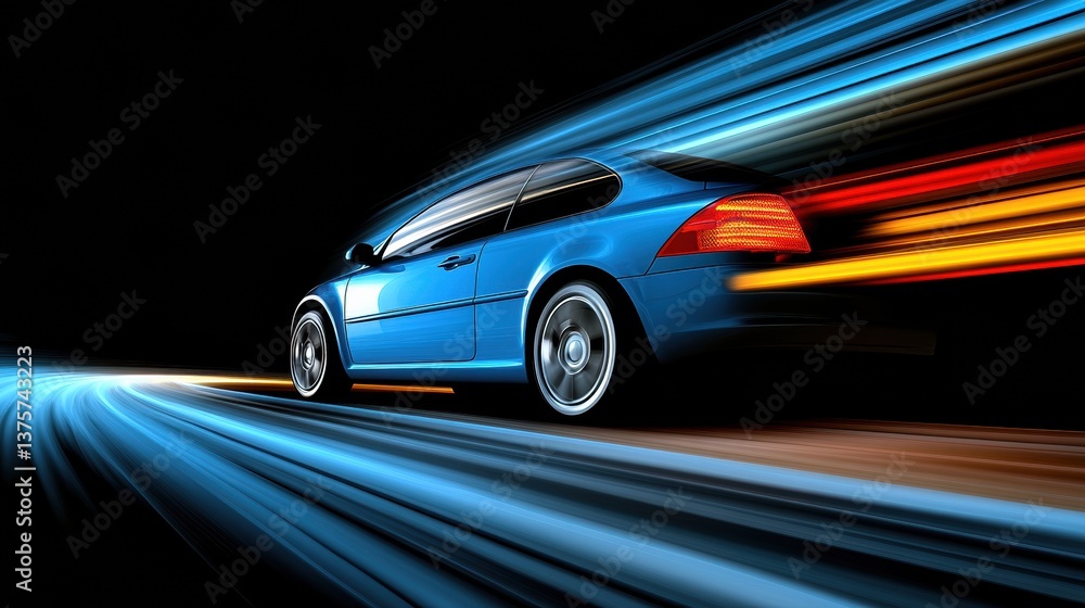Blue Sports Car Speeding At Night Motion Blur Wallpaper Mural - Decorly Solutions | Decorly Solutions