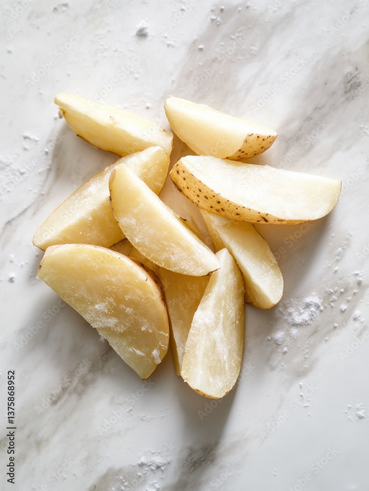 Peeled Potato Wedges Covered The Whole White Tabletop Wallpaper Mural - Decorly Solutions | Decorly Solutions