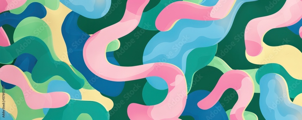 Doodle Seamless Pattern Green Blue Pink Color Scheme Wallpaper Mural - Decorly Solutions | Decorly Solutions