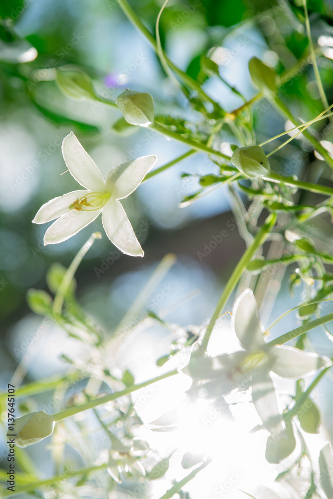 Delicate white jasmine blossoms against a vibrant blue sky , stock, pure