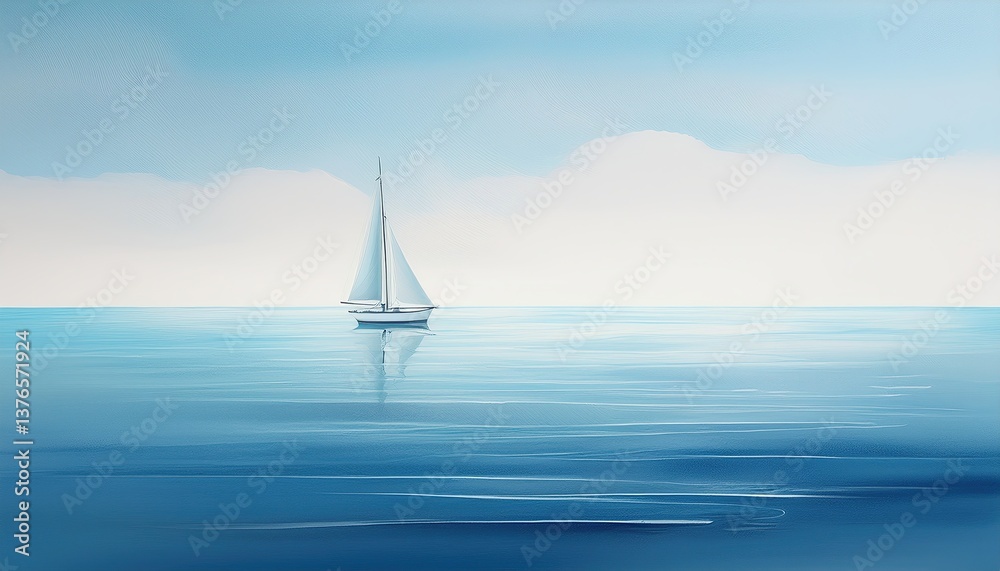 Solitude Sailboat on Calm Teal Ocean: A Serene Seascape