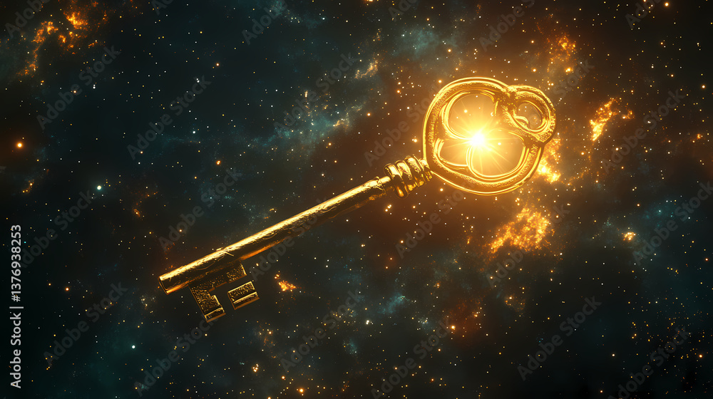 sparkling golden key surrounded by shimmering lights symbolizes unlocking potential and opportunities. Its enchanting glow captivates viewer imagination
