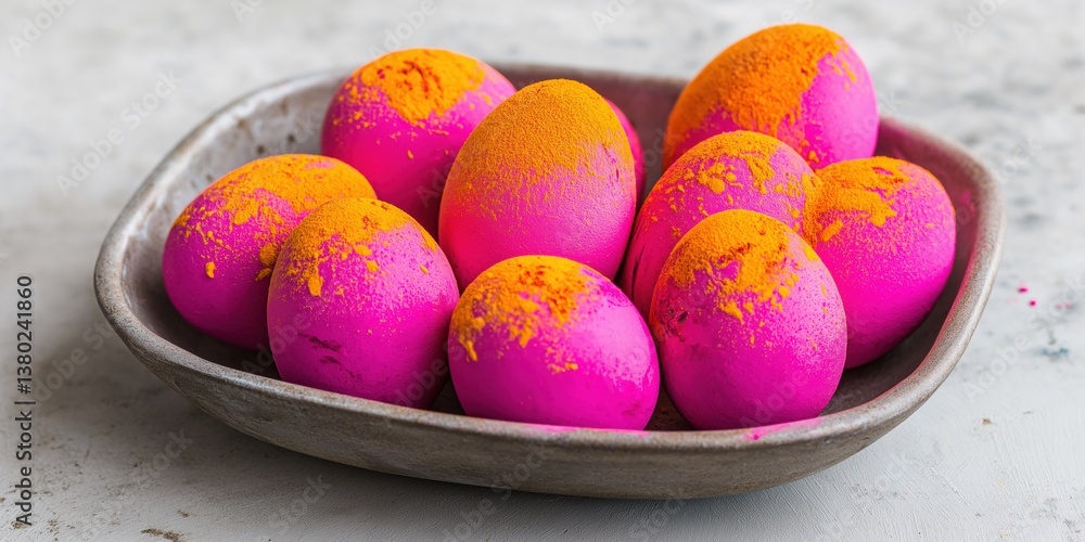 A Bowl Of Pink And Orange Eggs With Wallpaper Mural - Decorly Solutions | Decorly Solutions