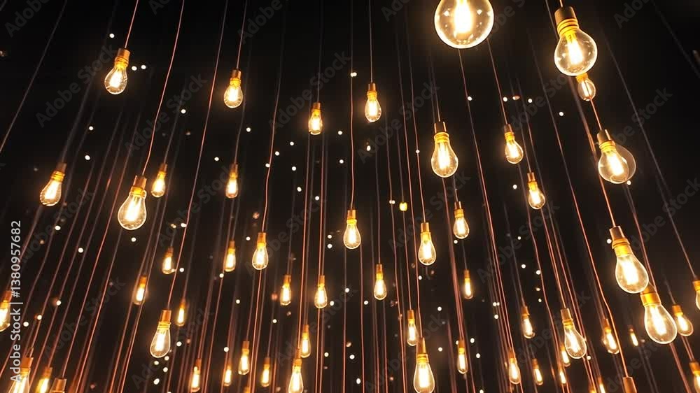 Creative Concept Of Hanging Light Bulbs Illuminating A Wallpaper Mural - Decorly Solutions | Decorly Solutions