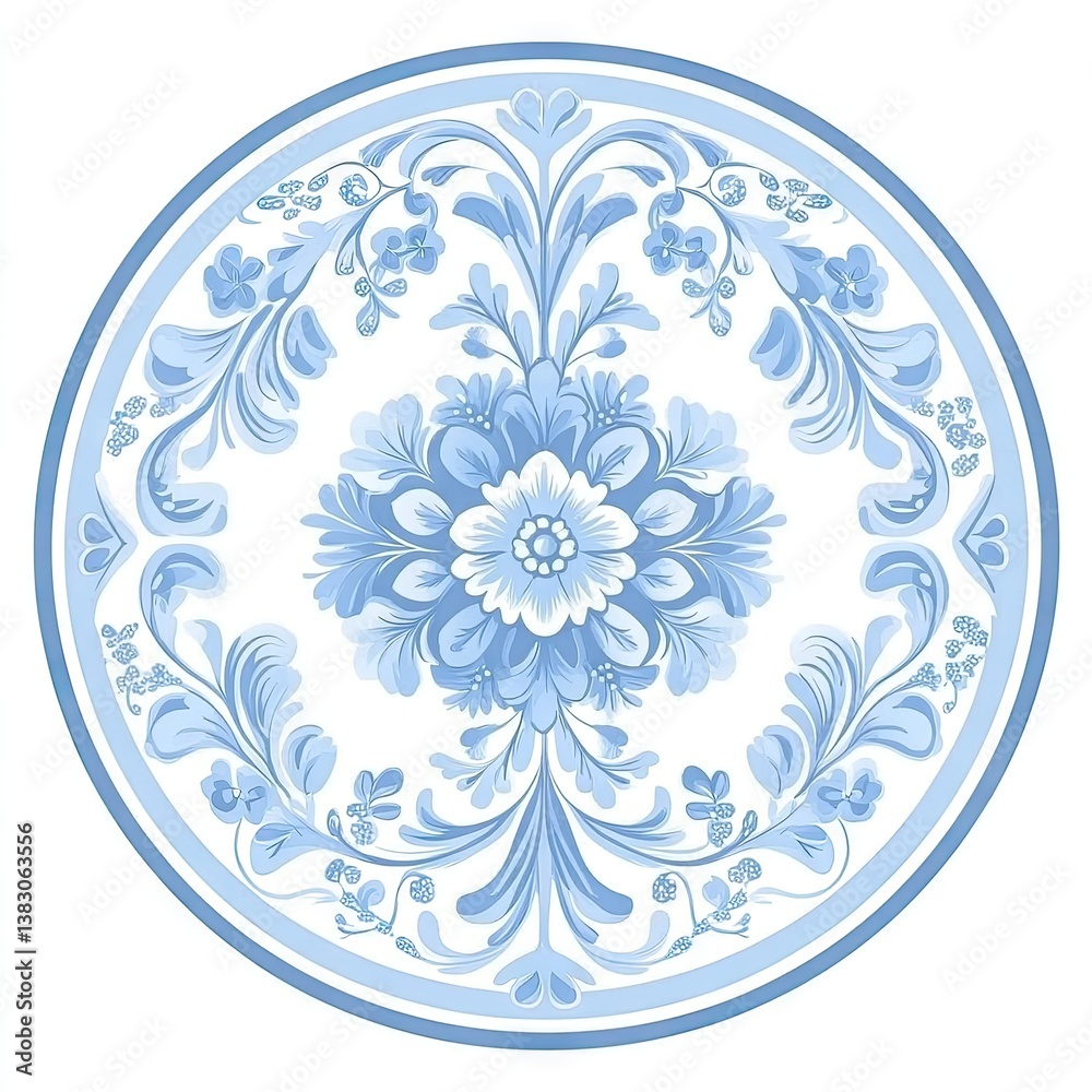 Circular Design With Intricate Blue Floral Patterns Wallpaper Mural - Decorly Solutions | Decorly Solutions