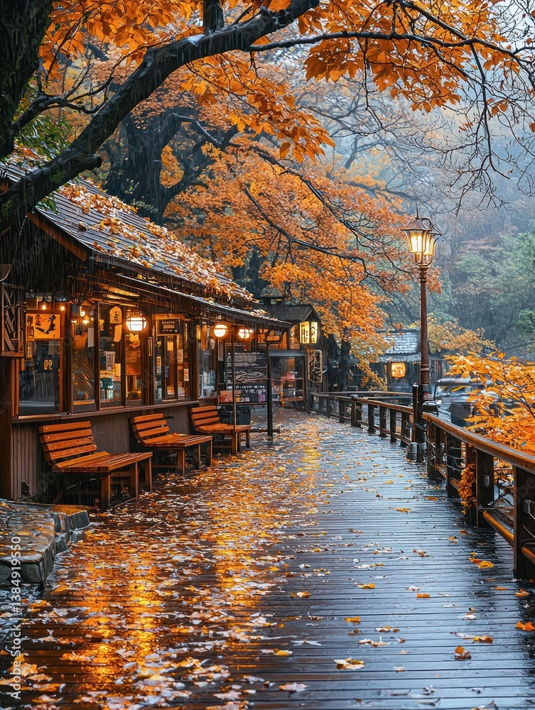 Tranquil Autumn Scene Featuring A Wooden Pathway And Wallpaper Mural - Decorly Solutions | Decorly Solutions