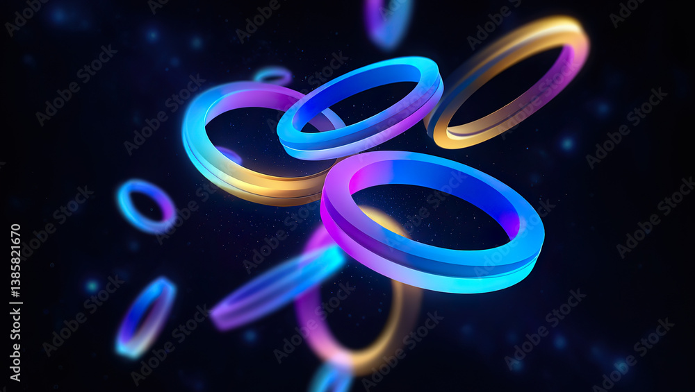 Colorful Glowing Rings In Various Styles And Motions Against A Dark Background, Suitable For Digital Design And Creative Projects