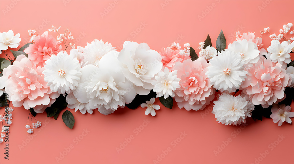 Pink And White Paper Flowers On Coral Background Wallpaper Mural - Decorly Solutions | Decorly Solutions