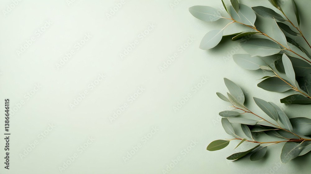 Sage Green Eucalyptus Leaves On Pastel Background Wallpaper Mural - Decorly Solutions | Decorly Solutions