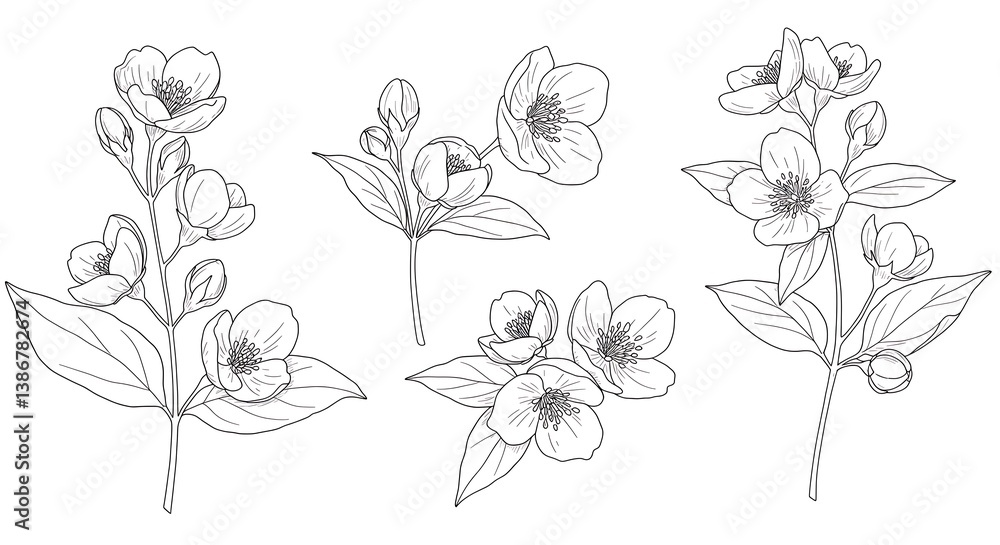 Botanical Line Art: Delicate Jasmine Sketches AI Generated Wallpaper