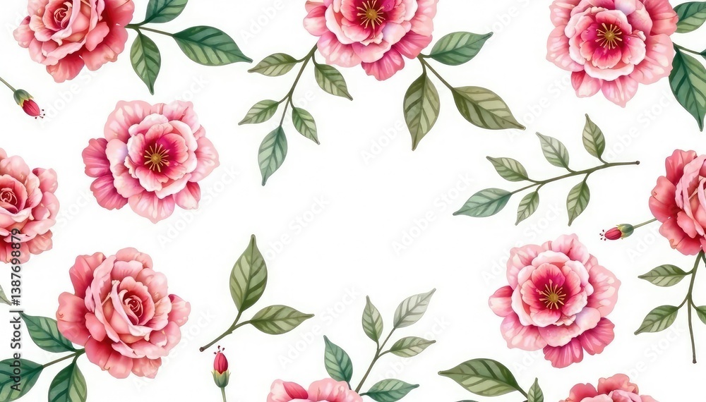 Delicate Watercolor Roses & Leaves Repeating Pattern Watercolor Wallpaper Mural - Decorly Solutions | Decorly Solutions