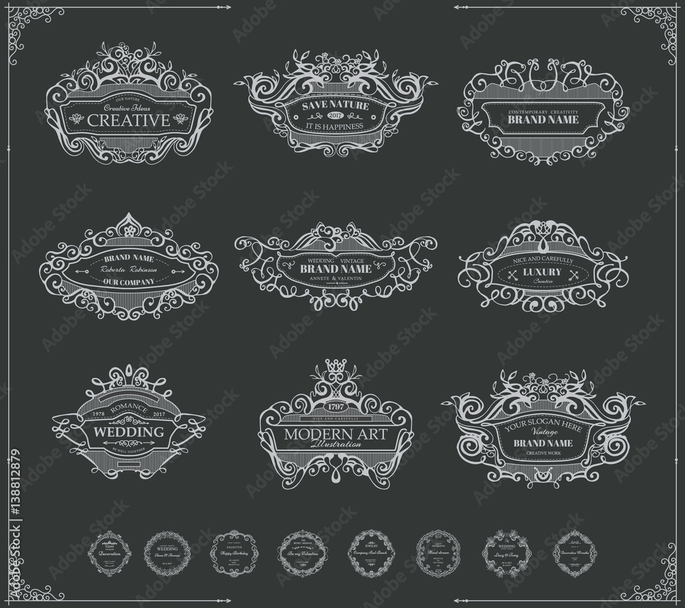 Beautiful flowers creative set of cards template with beautiful flourishes ornament elements. Elegant design for corporate identity, invitation, book covers. Design of background products.