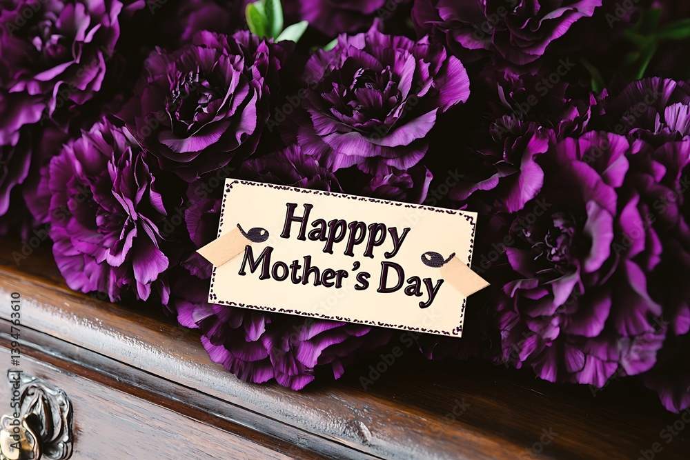A Charming Display Of Pastel Carnations Encircling A "happy Mother's Day" Tag On A White Painted Wood Panel.