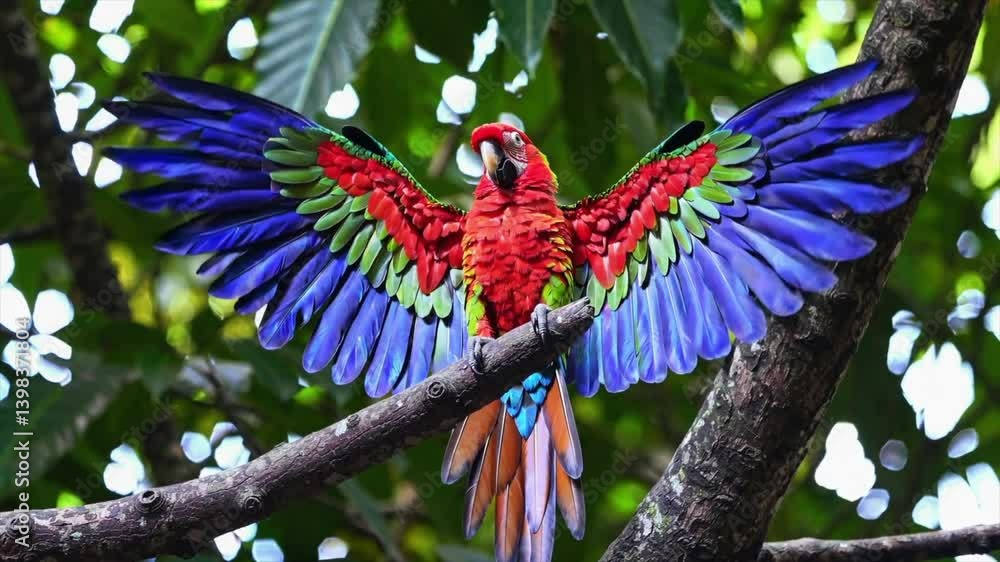 Colorful Parrot Spreads Wings In Lush Rainforest During Wallpaper Mural - Decorly Solutions | Decorly Solutions