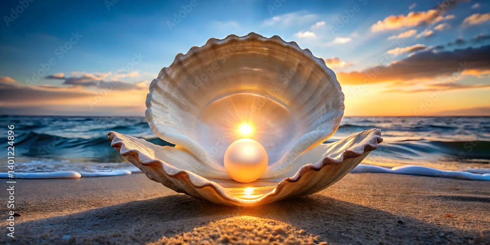 A Giant Seashell Opening To Reveal A Glowing Wallpaper Mural - Decorly Solutions | Decorly Solutions