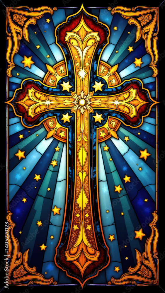 Stained Glass Christian Cross Art On A Gray Wallpaper Mural - Decorly Solutions | Decorly Solutions