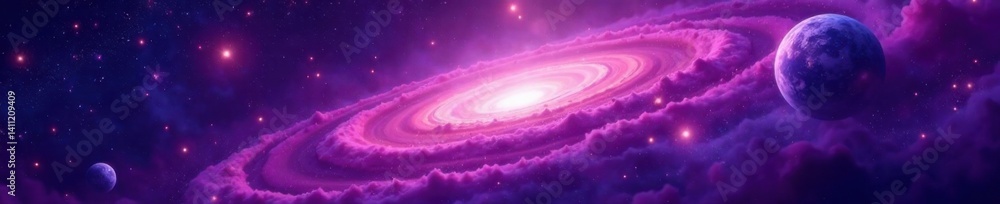 Swirling Purple Nebula With Stars And Planets Galaxy Wallpaper Mural - Decorly Solutions | Decorly Solutions
