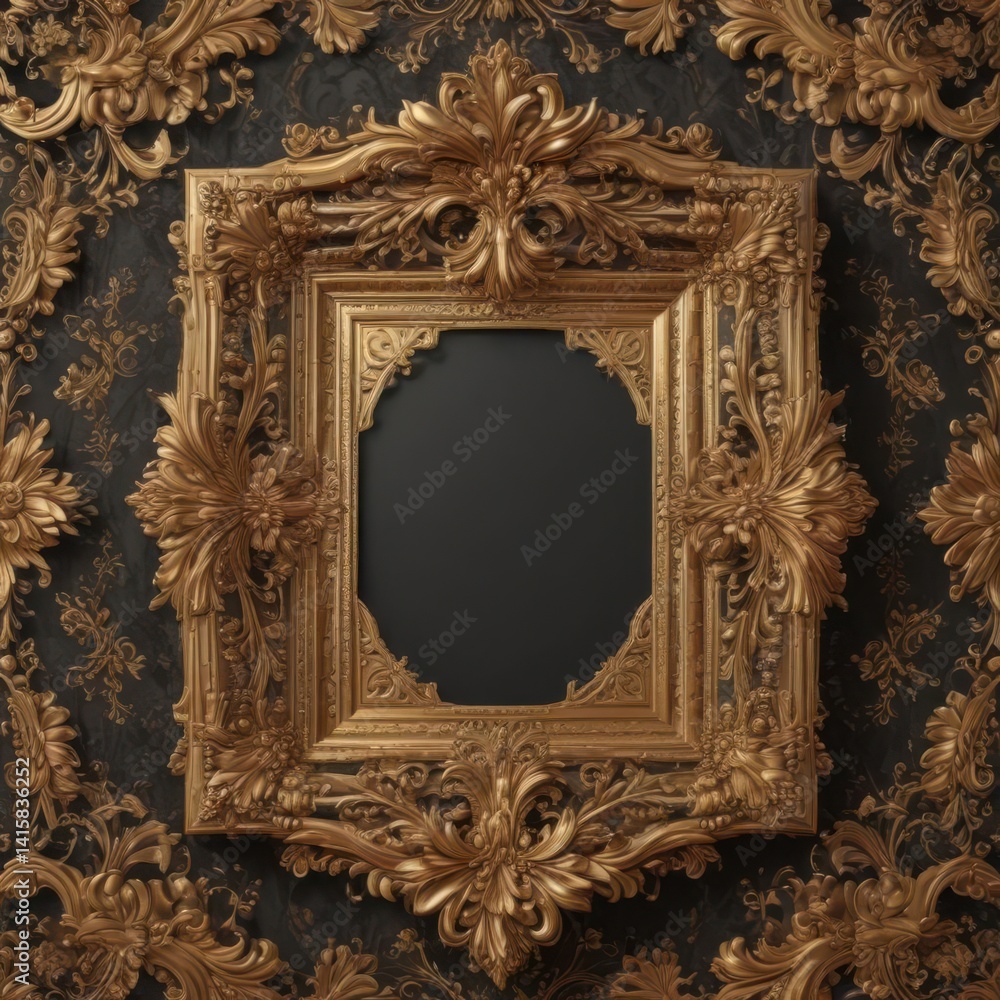 Intricate Gold Frames On Luxurious Damask Floral Motifs Wallpaper Mural - Decorly Solutions | Decorly Solutions