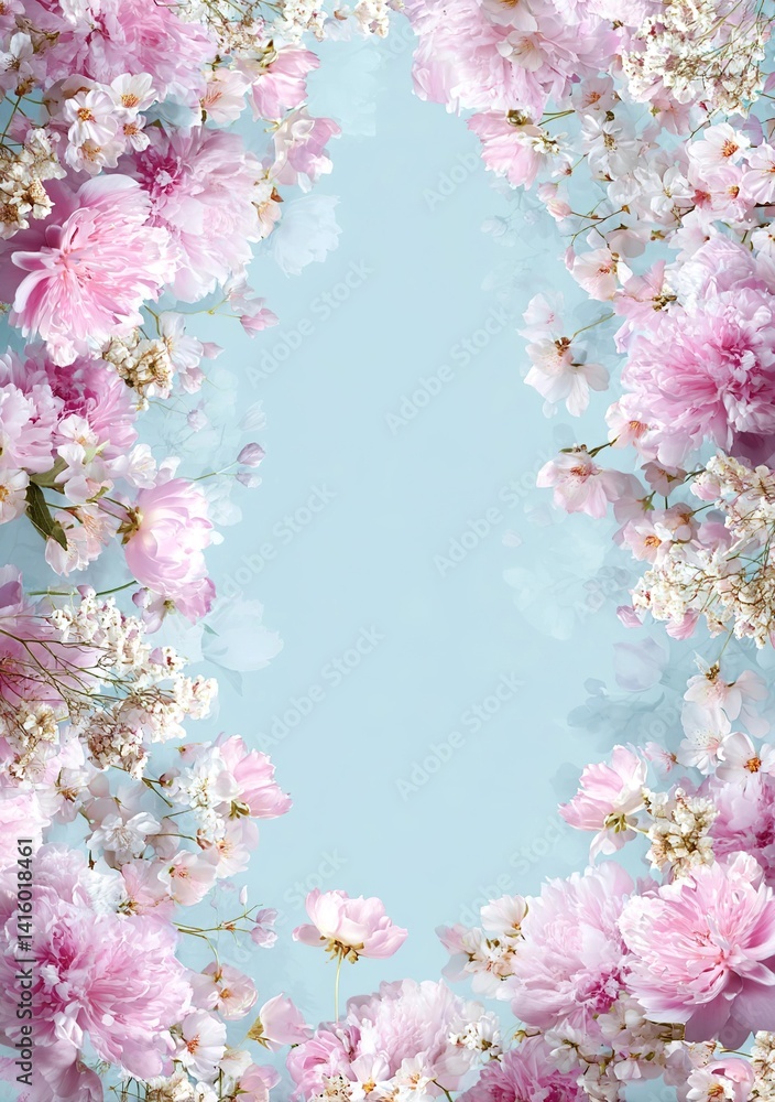 A Light Blue Background With Pink Flowers On Wallpaper Mural - Decorly Solutions | Decorly Solutions