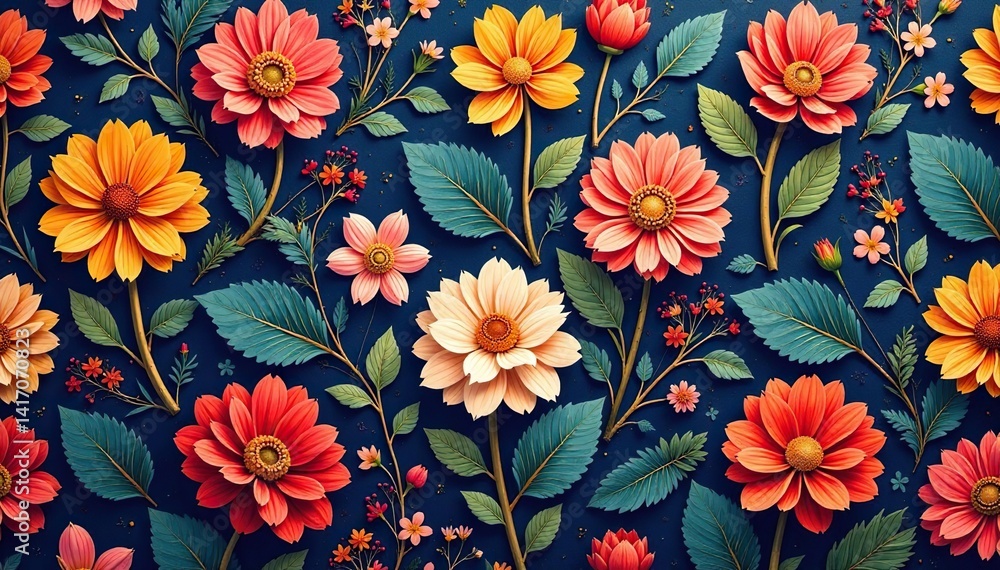 Intricate Floral Textile Design Repeating Seamlessly Repeat Blossom Wallpaper Mural - Decorly Solutions | Decorly Solutions
