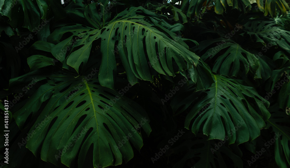 Mysterious overlapping exotic leaves form an elegant, textured tropical design , vibrant, organic, black
