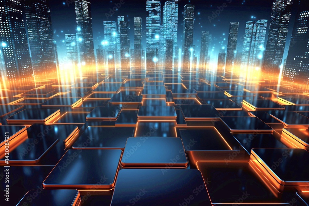 A Futuristic Cityscape Where Digital Blocks Form A Wallpaper Mural - Decorly Solutions | Decorly Solutions