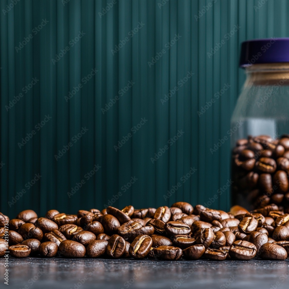 A stylish jar filled with coffee beans surrounded by loose b Wallpaper