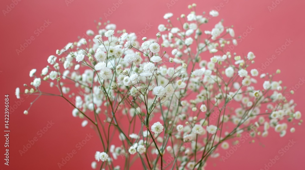 Bunch of white flowers are in a vase on a red background Wallpaper
